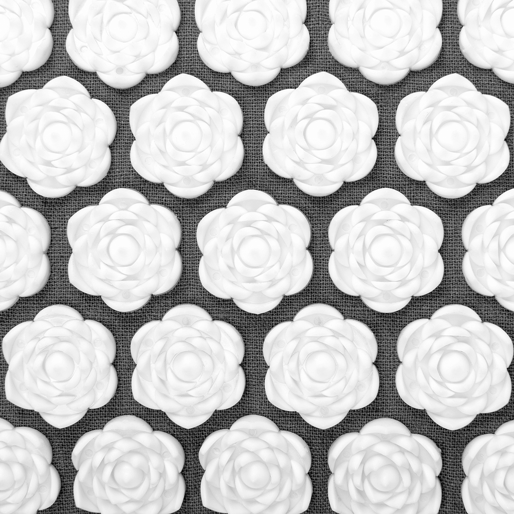 Коврик выполнен с учётом естественных особенностей тела. Акупунктурные подушки поддерживают необходимые изгибы и обеспечивают более глубокое и точное воздействие на мышцы и нервные окончания.